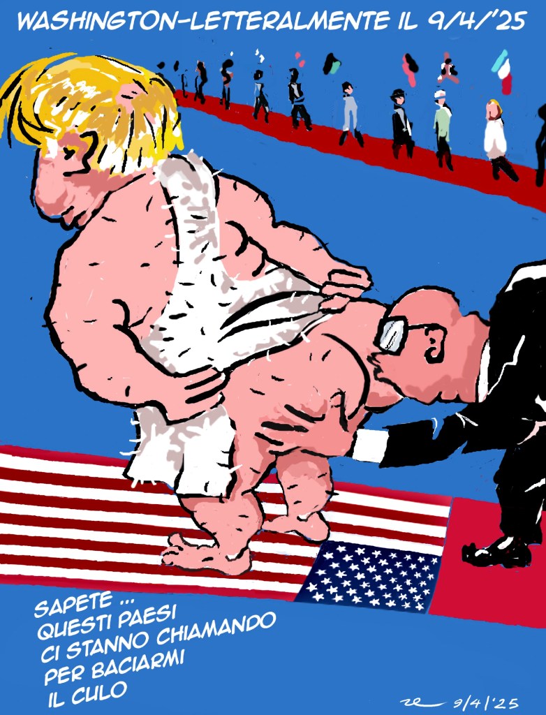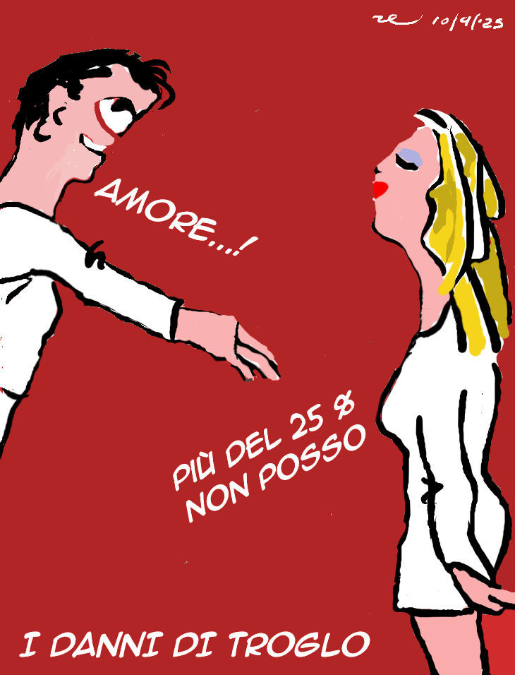 Troglo supera il suo stesso linguaggio binario. Di solito dice hic per dire sì e hoc per dire no. Oggi, 9 aprile 2025, ha espresso in modo molto articolato, con sorpresa universale, il primo concetto complesso: che una sua parte corporea è molto ambita … … Ora tocca a noi fregare … … Sapete, questi paesi ci stanno chiamando per baciarmi il culo … È inutile mettere gli asterischi, tanto è ufficiale. È storia.