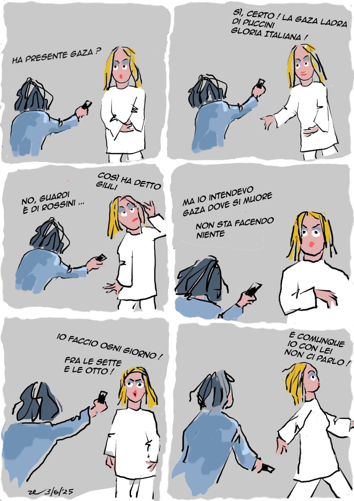 Ultim’ora. Si apprende intanto che dagli aiuti per Gaza, a terra, pur bloccati, occorre eliminare zucchero, miele e biscotti perché “troppo calorici”...
